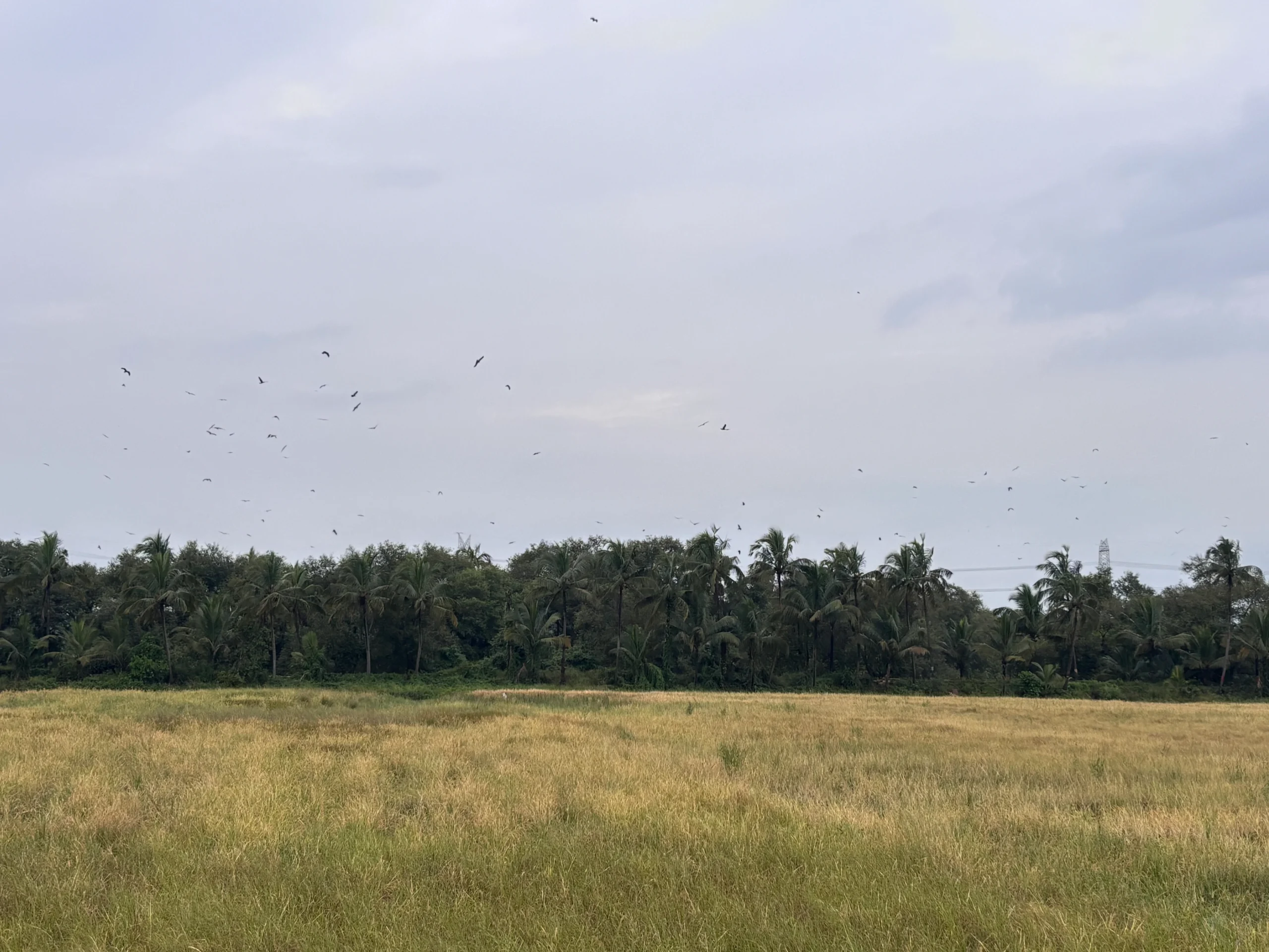 Amona fields in Goa are home to a rich variety of birdlife, with 107 species recorded across its paddy landscapes, hedgerows, and scattered trees. Seed-eating birds like Red Avadavats, Scaly-breasted Munias, and Tricoloured Munias are a common sight, moving in lively flocks between crops and tall grasses. Insect-loving species such as Pied Bushchats, Siberian Stonechats, and Paddyfield Pipits add animation to the fields, often perched on low stems or hopping across open ground. Blue-tailed Bee-eaters and Common Kingfishers bring splashes of colour as they hunt for insects and fish along field channels, while the Oriental Skylark fills the air with its characteristic hovering song displays. Overhead, Brahminy and Black Kites circle gracefully, scanning for prey or carrion as they glide over the open countryside.