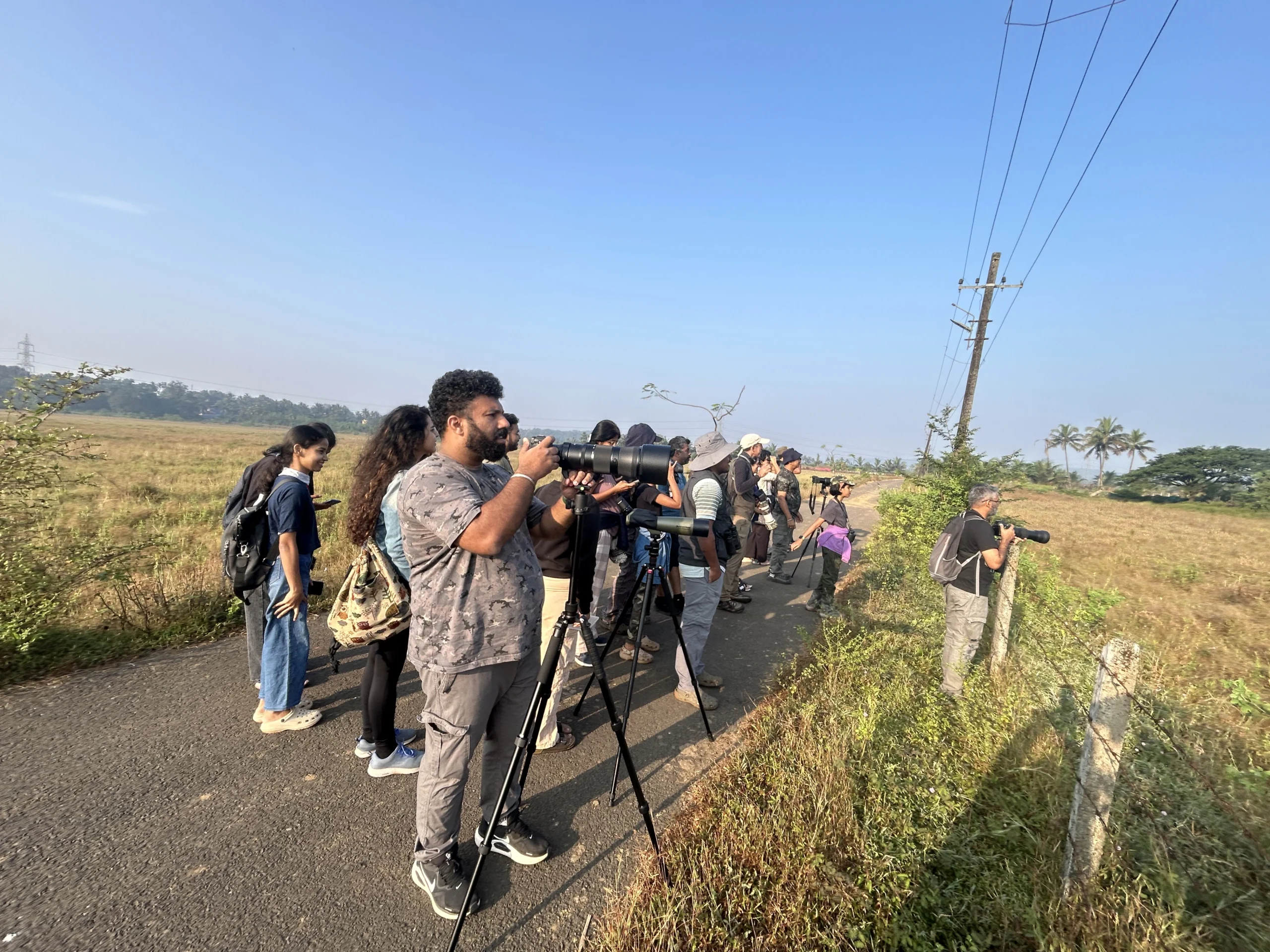 At Amona Fields, 20 participants embarked on an adventurous exploration through diverse habitats rich in birdlife. The group recorded an impressive 72 species, including highlights such as Lesser Adjutant, Yellow Bittern, Greater Spotted Eagle, Western Marsh Harrier, Malabar Grey Hornbill, Vernal Hanging Parrot, and an extraordinary sighting of 200 Baya Weavers. Binoculars and spotting scopes helped participants enjoy detailed views of these spectacular species.