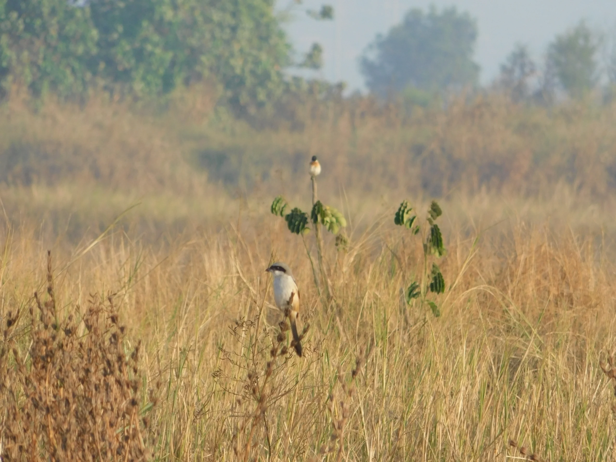 The open wetlands, grasslands, and saltpan edges come alive with a vibrant mix of resident and migratory birds that reflect the rich diversity of the landscape. Winter visitors like the elegant Siberian Stonechat perch atop shrubs, scanning the ground for insects, while the ever-alert Red-wattled Lapwing announces its presence with its unmistakable calls. Shrikes — both the bold Long-tailed Shrike and the sandy-toned Isabelline Shrike, sit like sentinels on exposed perches, embodying the drama of the open country. Along the ground, Paddyfield Pipits blend perfectly into the earthy tones, often overlooked until they take short fluttering flights.