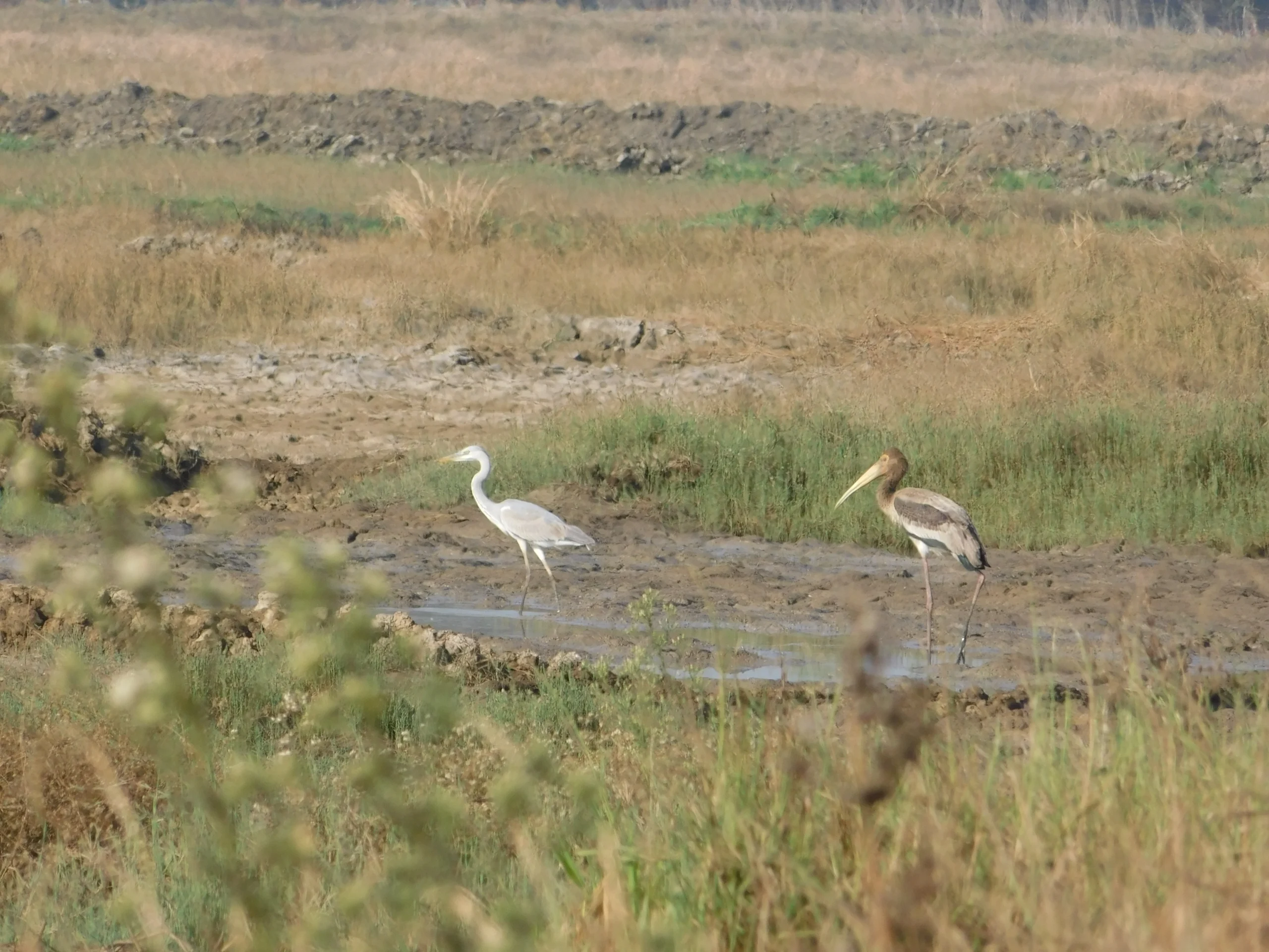 Raptors patrol overhead, while resident species like kingfishers, larks, pipits, and munias occupy the bunds and surrounding scrub. The open visibility makes it an exceptional site for observing feeding behavior, flock dynamics, and migration patterns up close.