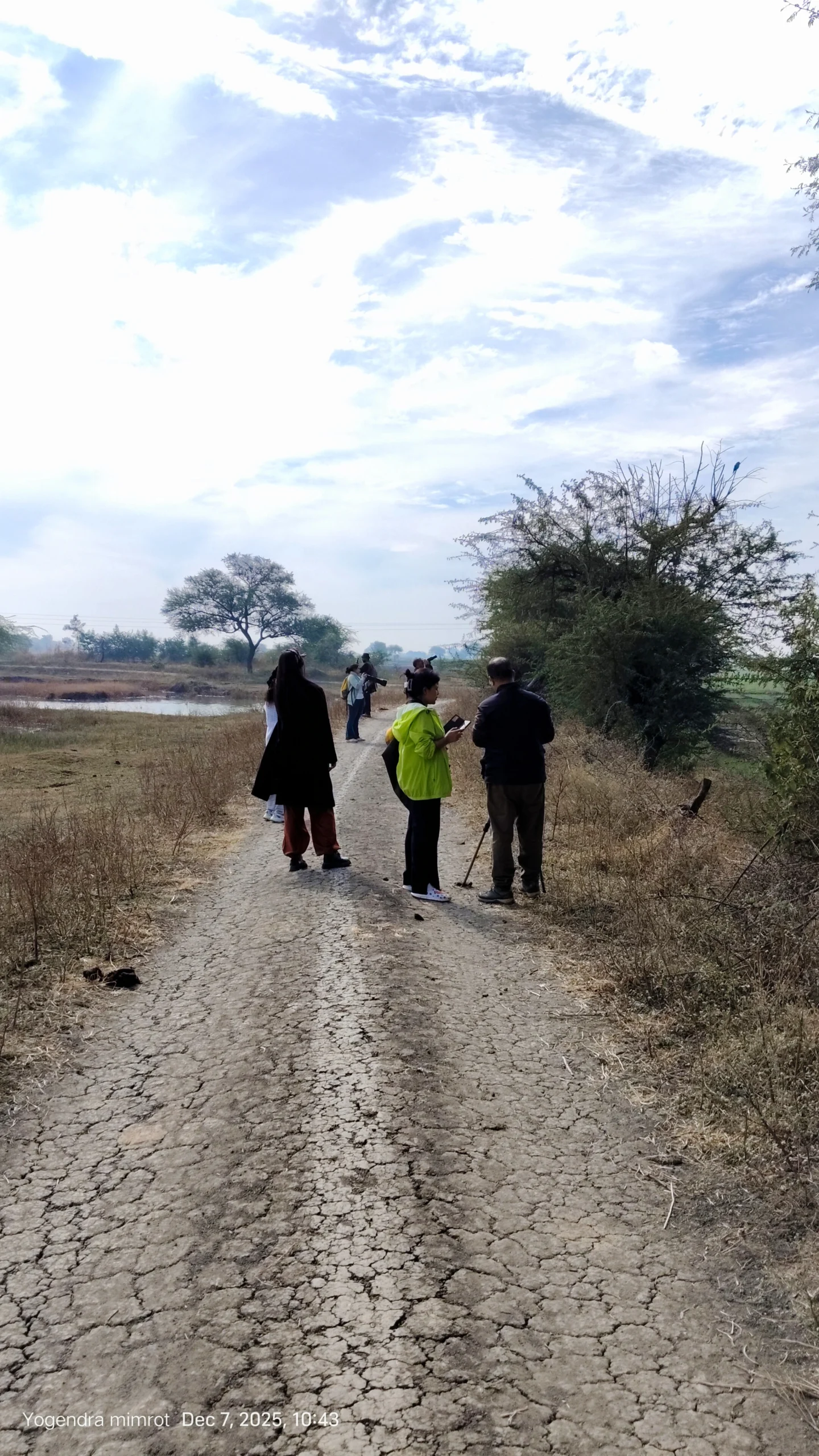 The bird walk at Daulat Baroda Lake, Indore, led by Yogendra, brought together six enthusiastic participants for an engaging morning in nature. With tall grasses surrounding the lake, many birds remained hidden at first, creating an atmosphere of anticipation and surprise. As the group patiently scanned the landscape, several remarkable sightings emerged—including a Common Kestrel, a pair of Sarus Cranes, Eurasian Collared-Doves, and notably, a pair of Egyptian Vultures. In total, the participants recorded 45 bird species, showcasing the impressive diversity of the area.