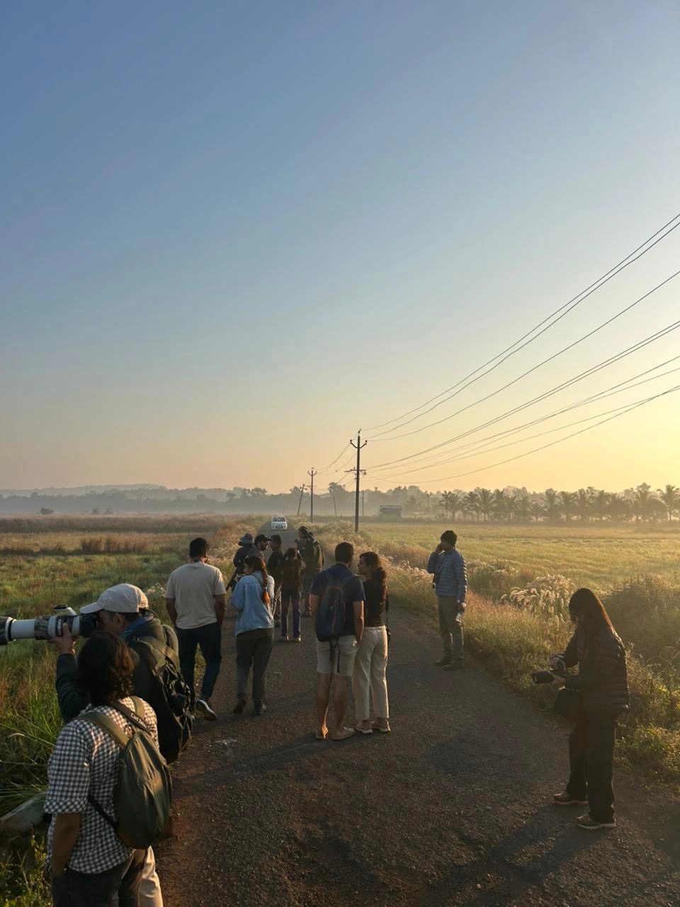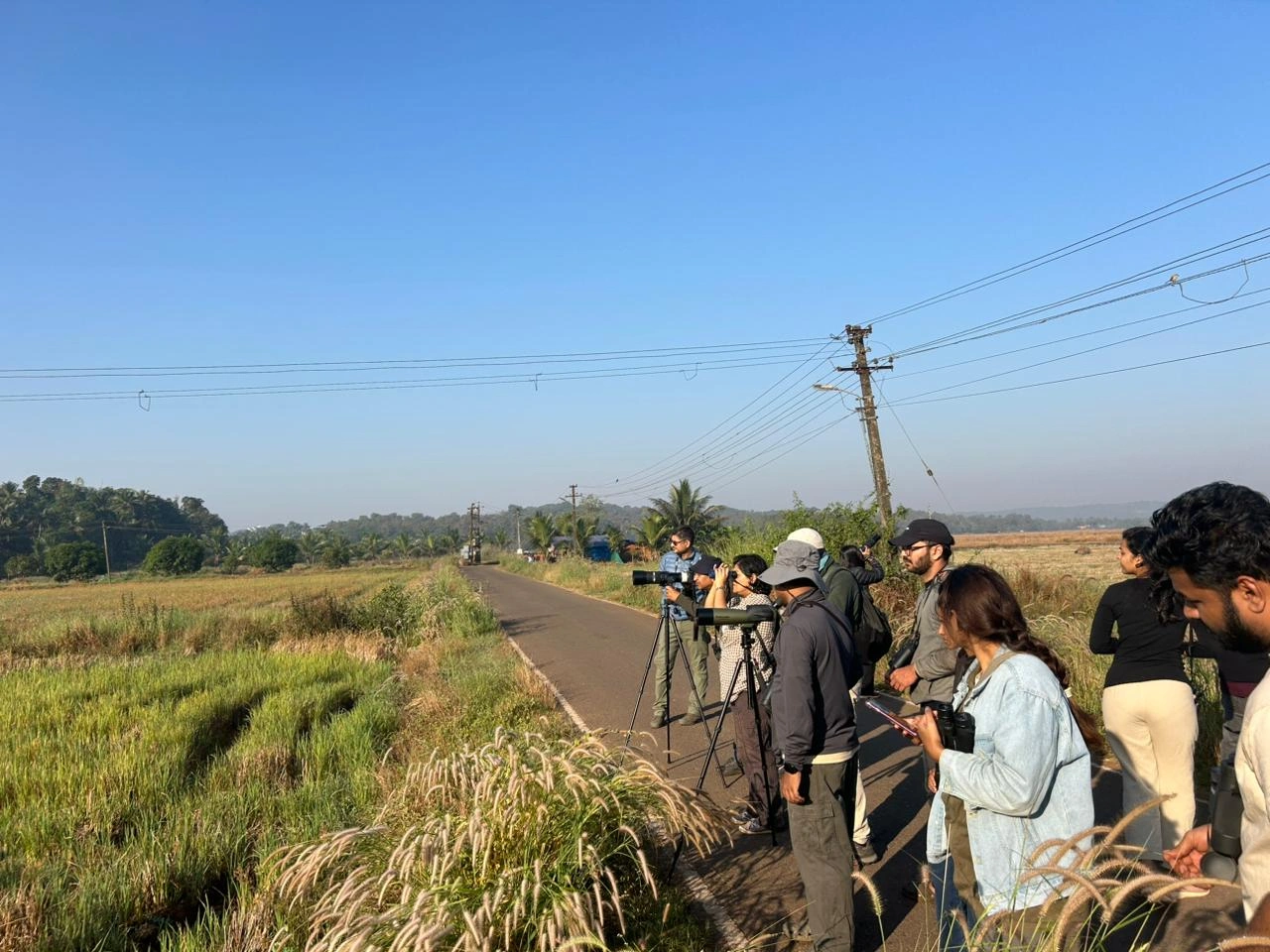The agricultural fields proved especially rewarding, offering close views of Tree Pipits, Tawny Pipits, and Paddyfield Pipits actively foraging among the crops. A memorable sighting included a small flock of Plum-headed Parakeets perched on electric wires, feeding on leftover paddy after harvest. The excitement continued with sightings of both Western Marsh Harrier and Pallid Harrier gliding low over the fields in search of prey. The walk concluded with participants reflecting on Diwar Island’s remarkable mosaic of habitats and its importance in sustaining vibrant and diverse bird communities.