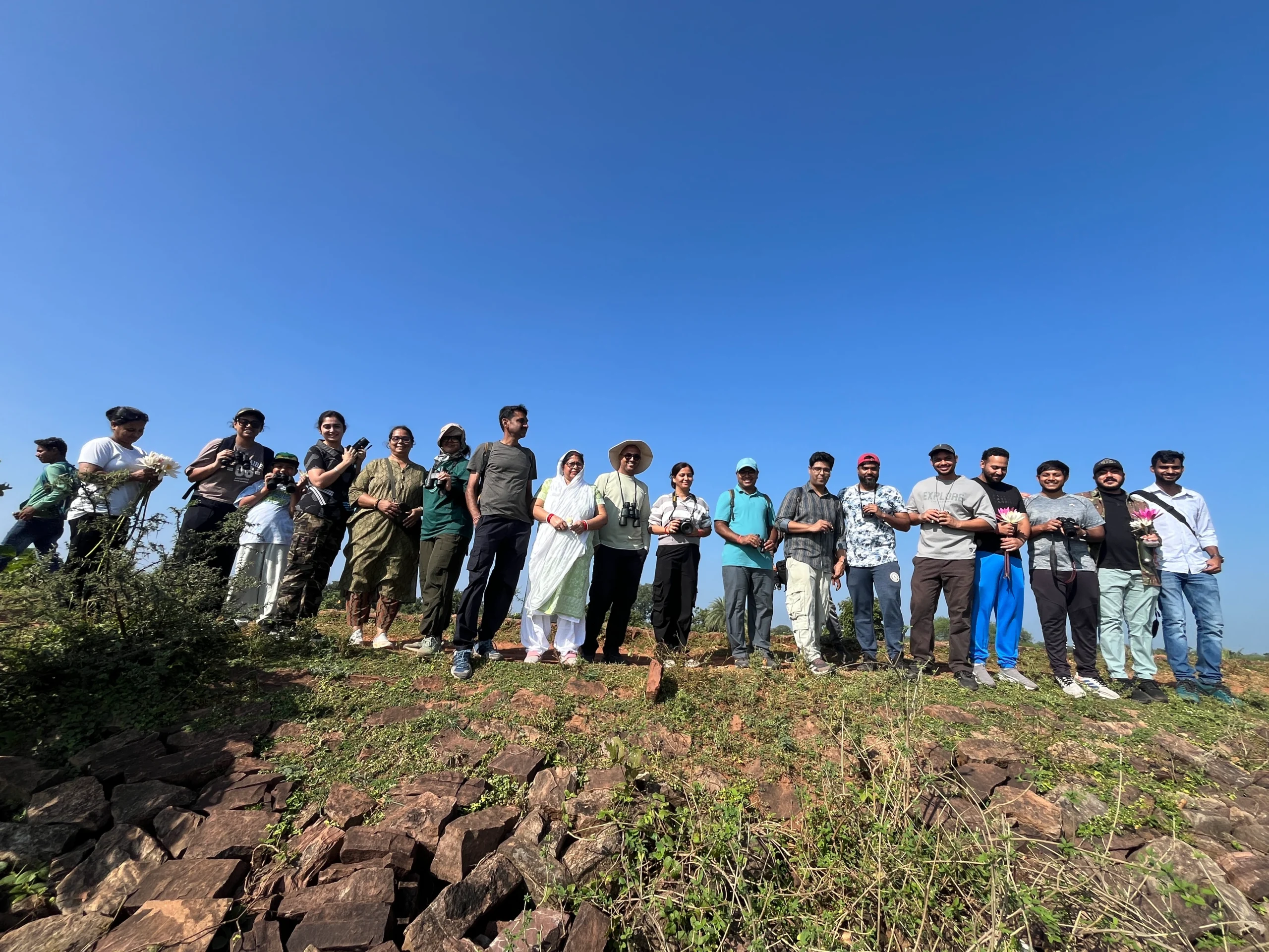 The Kopra Dam Bird Walk in Bilaspur, led by Rahul Gupta, marked a significant milestone as the first-ever bird walk in the city, drawing an enthusiastic response from the community. A total of 22 participants joined the event, including several first-time birders who enjoyed discovering the joy of birdwatching in a group setting. The participants recorded over 30 bird species, exploring the serene landscape of Kopra Dam while learning the basics of bird identification and observation.