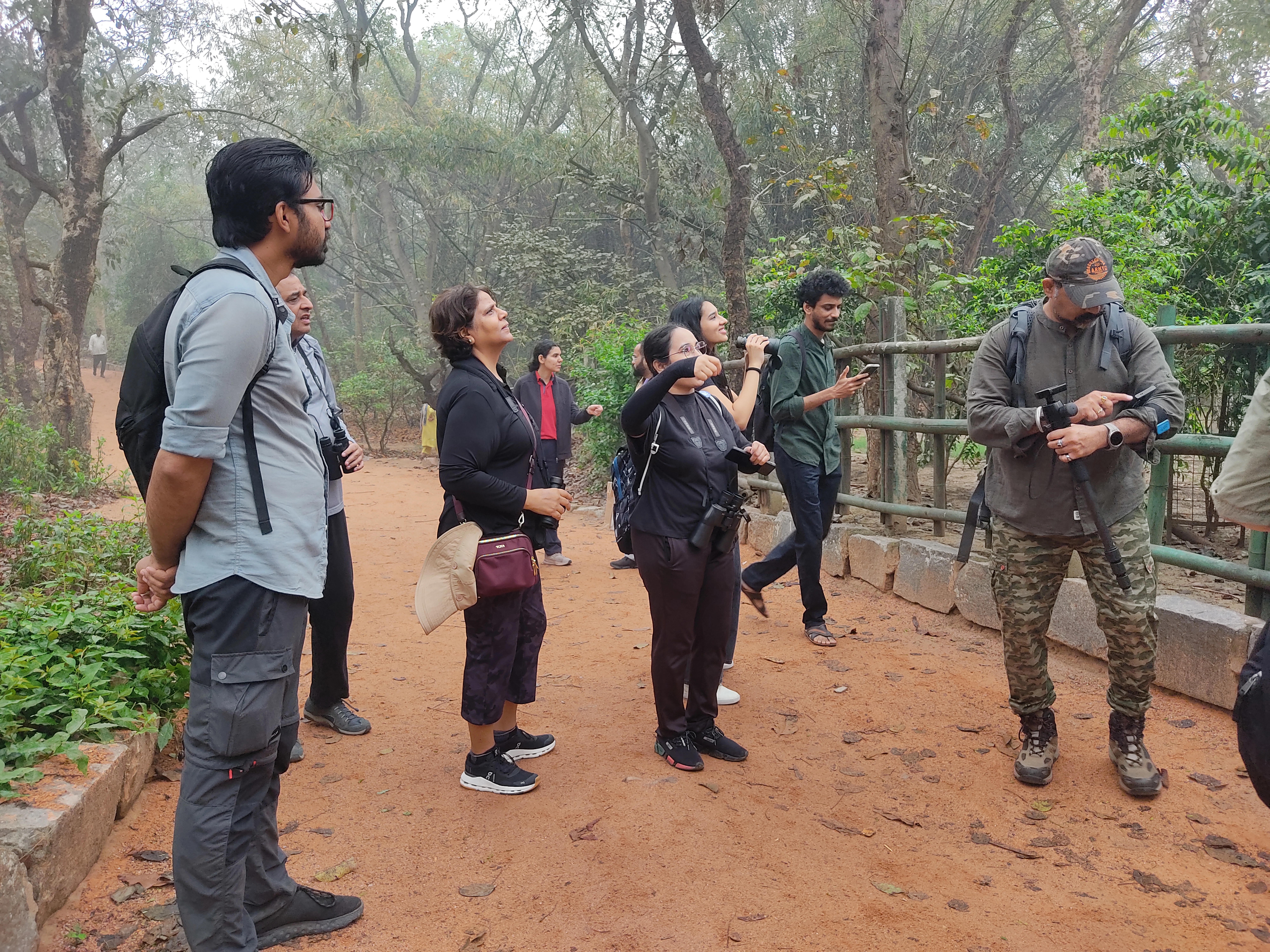 At Sanjay Van, Delhi, a large group of 24 participants joined Anjali Bhardwaj for an engaging bird walk that recorded 29 species despite challenging foggy conditions. The walk covered a mix of woody patches and water bodies, providing diverse habitats for birdlife.